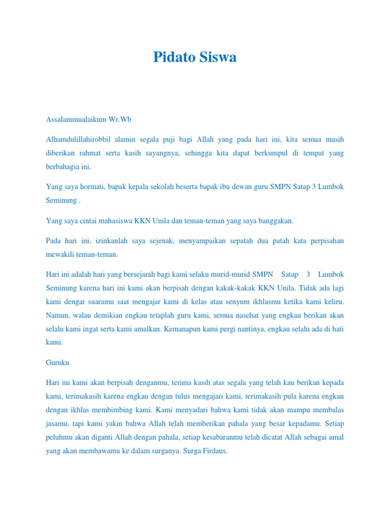DOC) Contoh Pidato Perpisahan KELAS 9 | JayKummarhe Zazg - Academia.edu