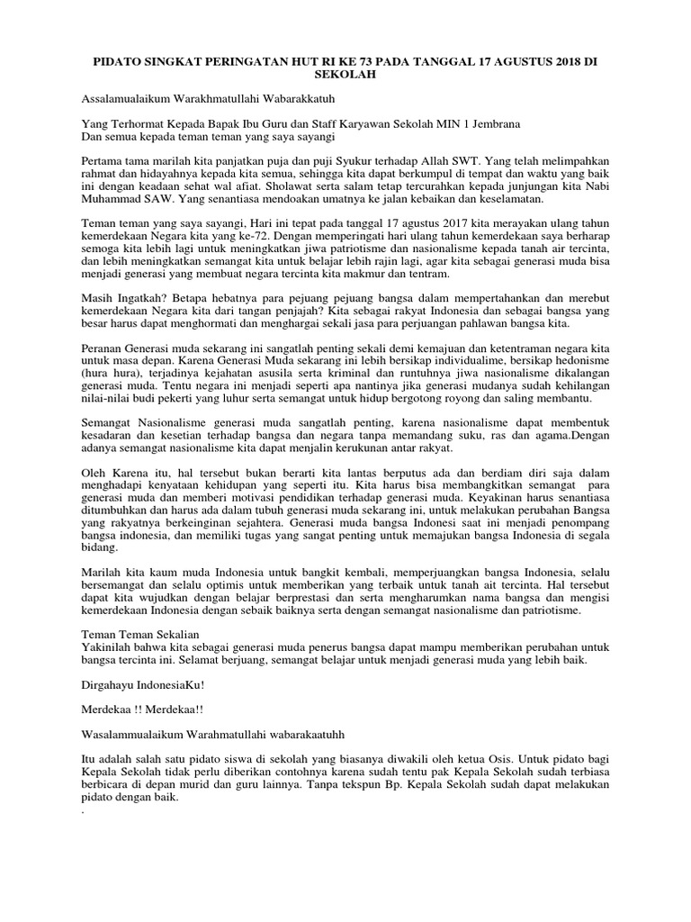 Contoh Pidato Kemerdekaan Ri Ke 73 | Blog Pendidikan