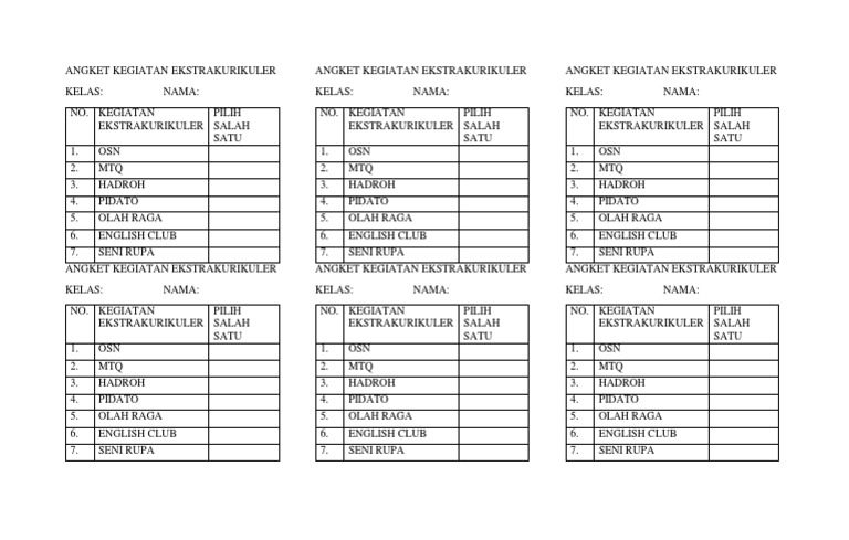 ANGKET KEGIATAN EKSTRAKURIKULER