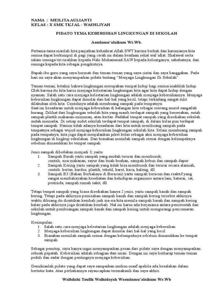 DOC) Pidato Kebersihan Lingkungan Sekolah | aditya hidayat …