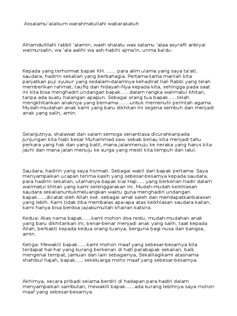 Contoh Sambutan dalam Acara Walimatul Khitan (Sunatan) | Kata Estetika
