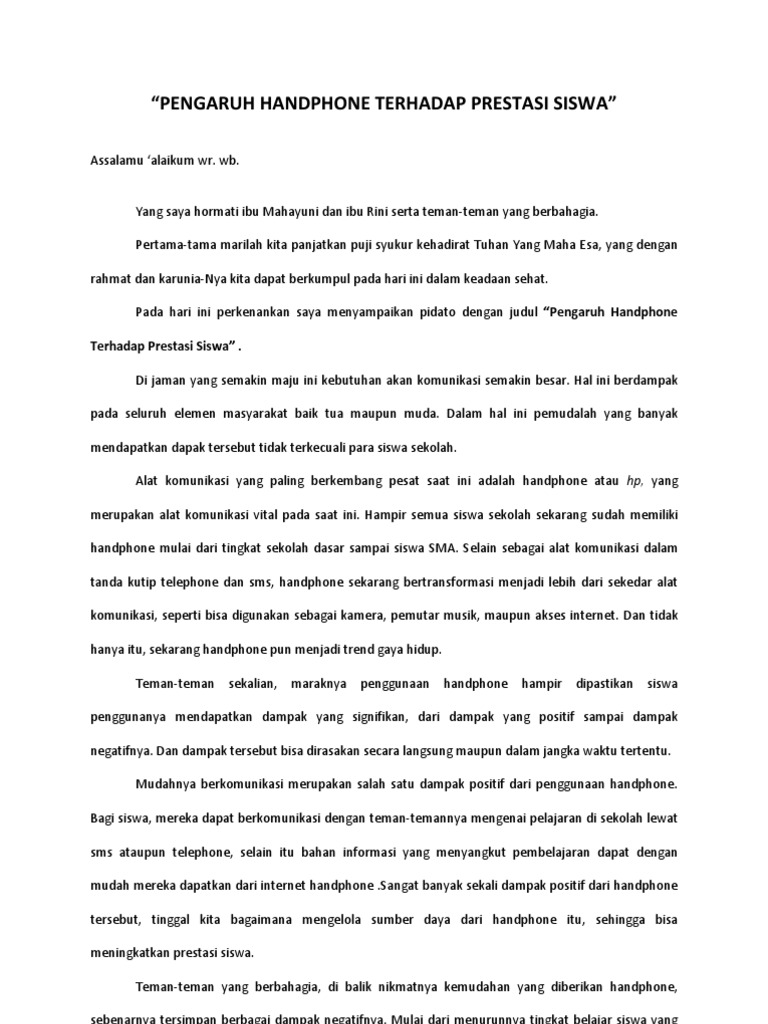 Pidato Ujian Praktik “Pengaruh Handphone Terhadap Prestasi Siswa”