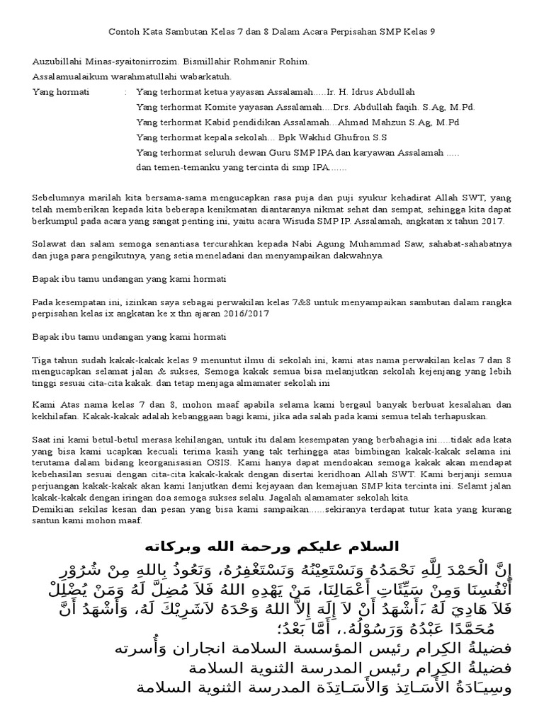 DOC) PIDATO PERPISAHAN SEKOLAH | Kim CalmBoy - Academia.edu