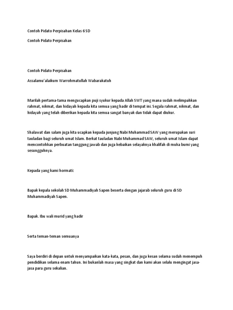 PDF) CONTOH PIDATO 51 Pidato Perpisahan SD | Farid Ramlan - Academia.edu