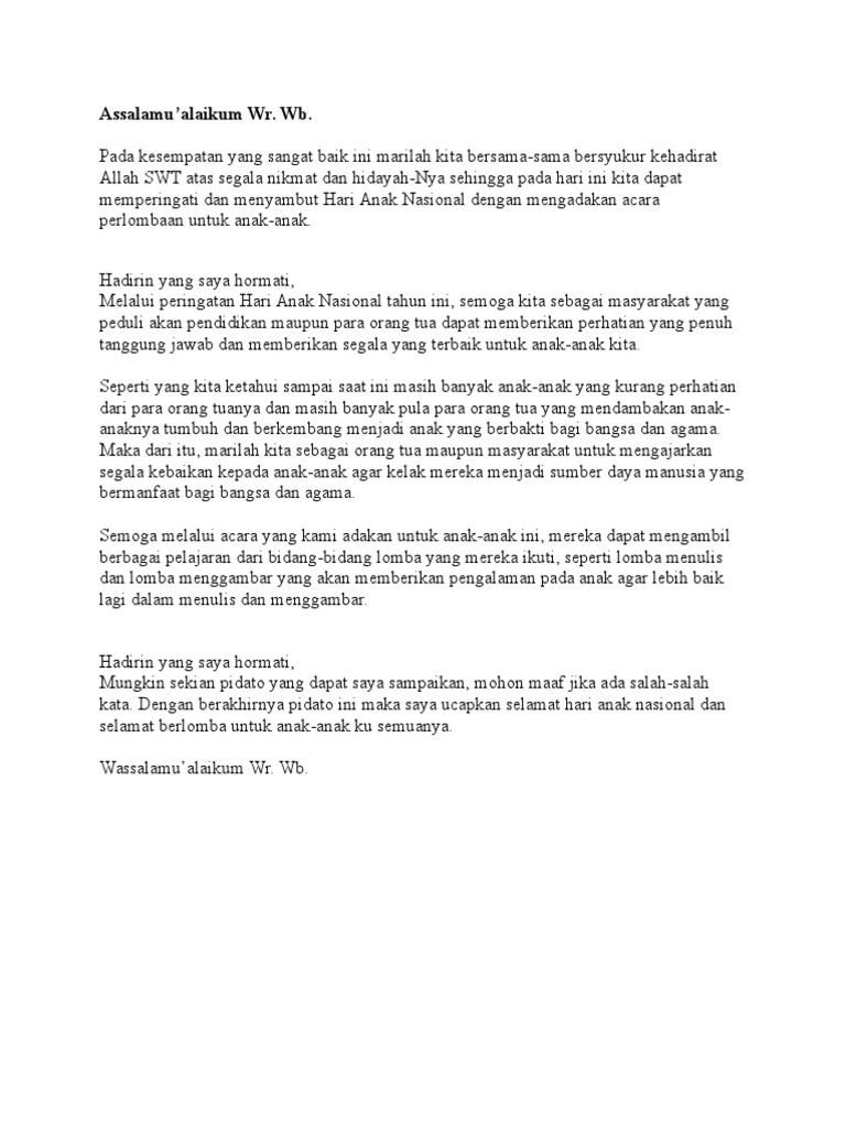 DOC) Ini adalah draft naskah lomba pidato anak | Abdulrahim Manggala - Academia.edu