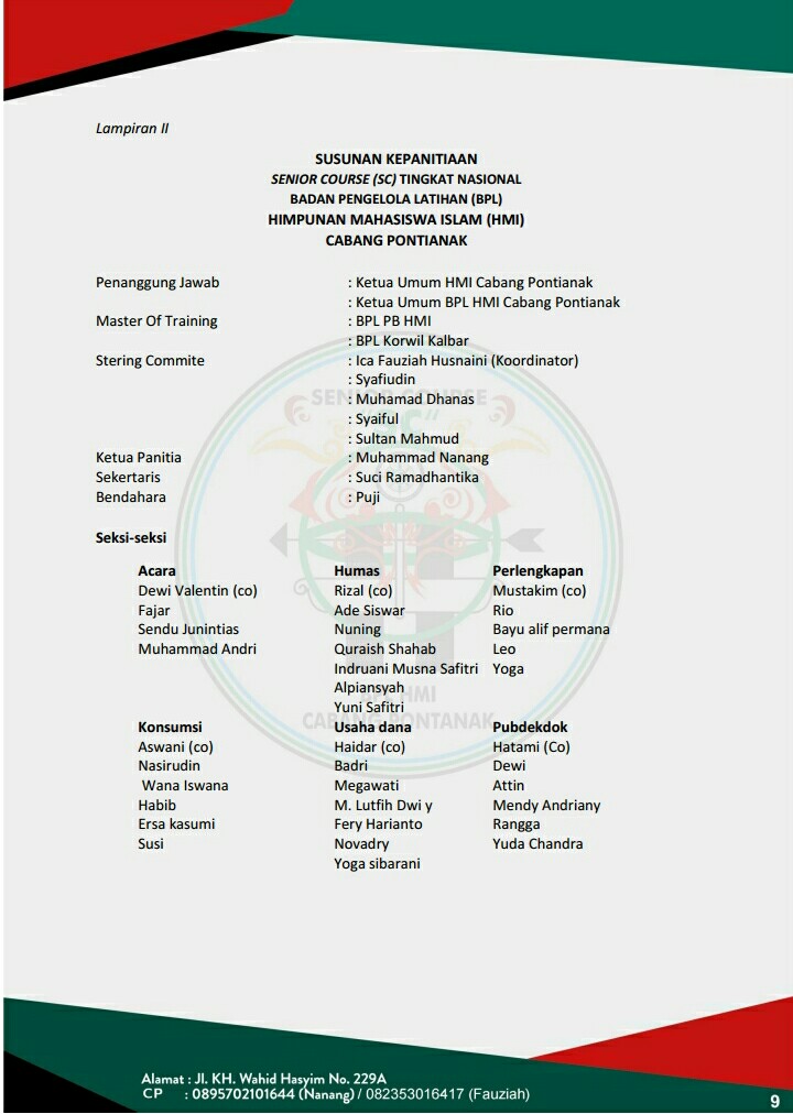 Proposal Senior Course (SC) Badan Pengelola Latihan (BPL) HmI Cabang Pontianak (Menciptakan Instruktur yang Memiliki Jiwa Profesionalisme) | Badan Pengelola Latihan(BPL) Himpunan Mahasiswa Islam(HMI) Cabang Pontianak