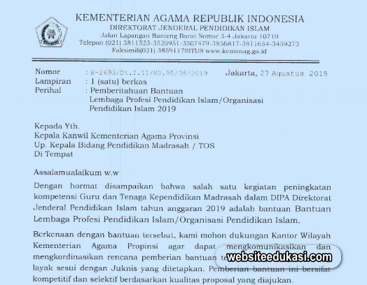 Juknis Bantuan Lembaga Profesi Pendidikan Islam 2019 | Websiteedukasi.com