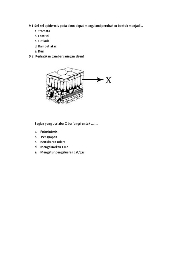 Jaringan Epidermis Tumbuhan, Pengertian Fungsi Ciri Contoh Soal Ujian
