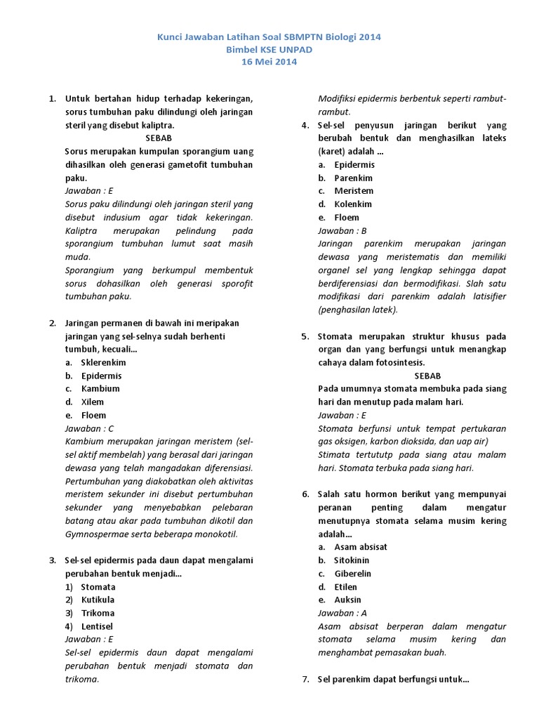 Kunci Jawaban Latihan Soal SBMPTN Biologi 2014 Bimbel KSE