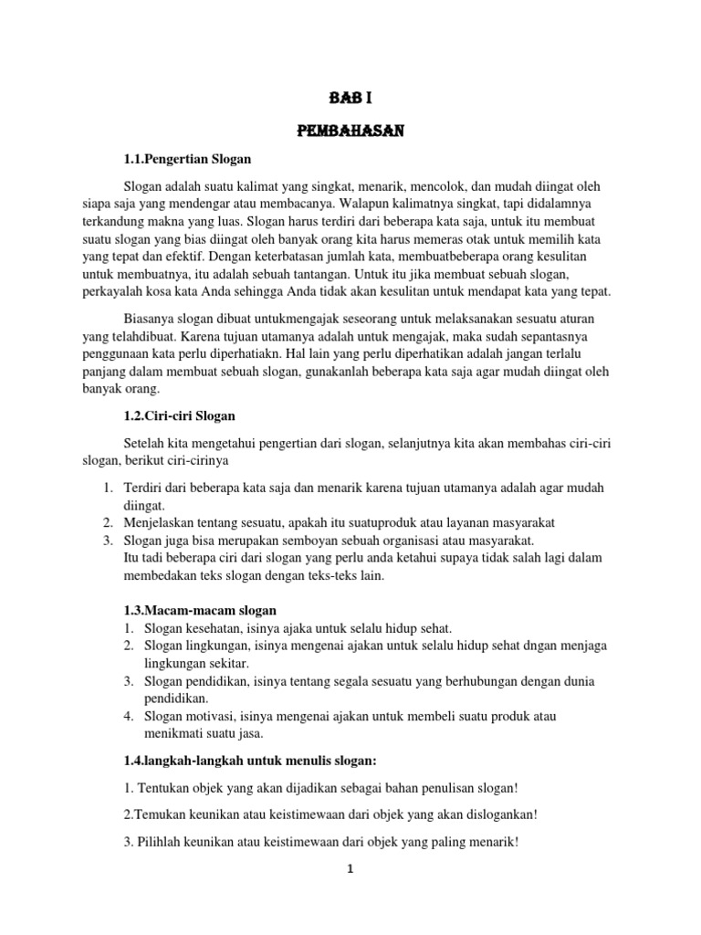 Bab I Pembahasan: 1.1.Pengertian Slogan