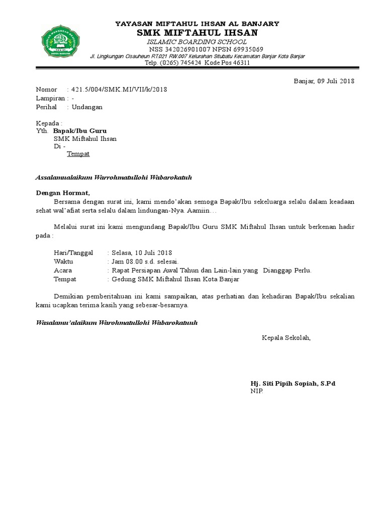 Contoh Surat Undangan Orang Tua Dari Sekolah - Sample Surat Undangan