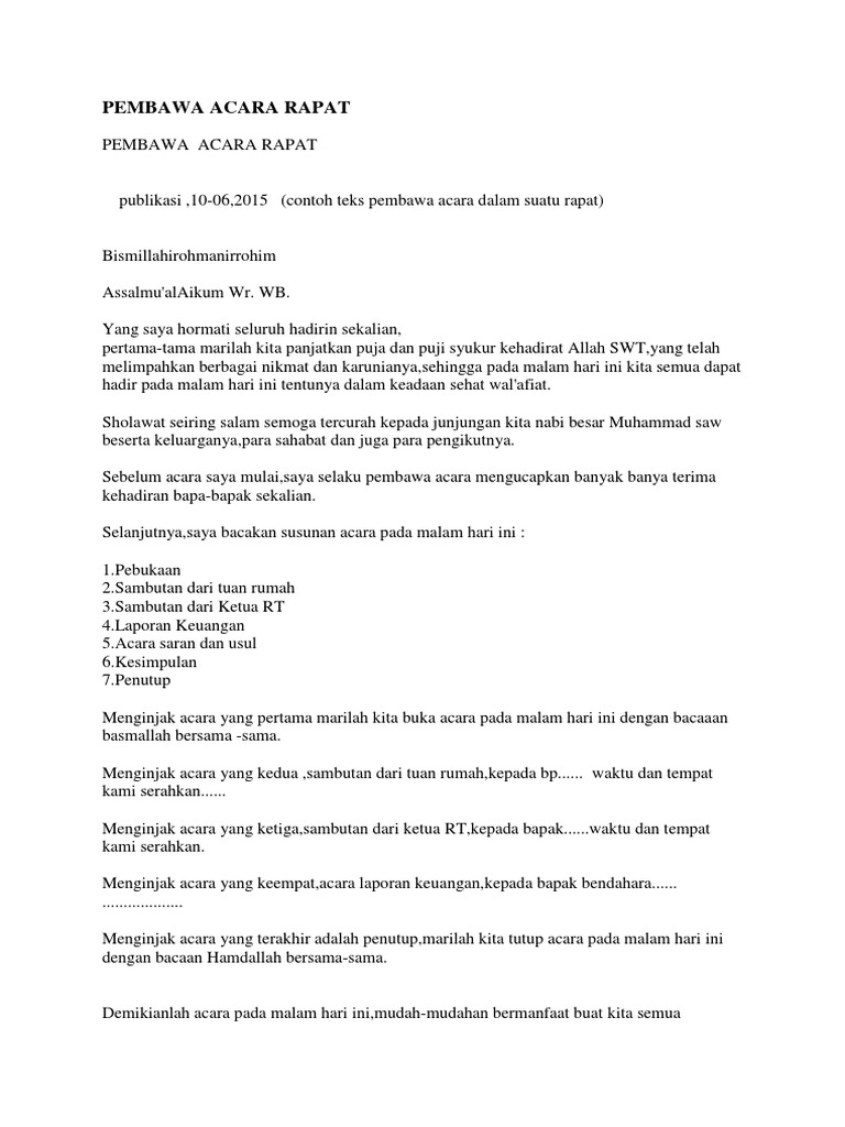 Susunan Acara Rapat Rt Bahasa Jawa