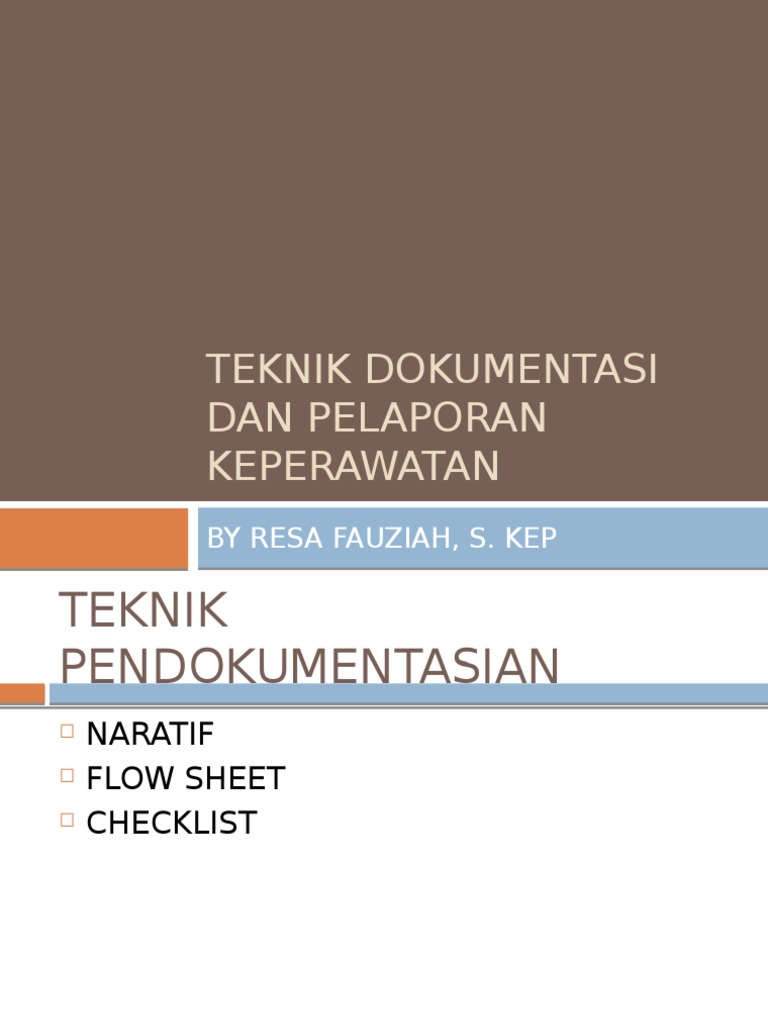 TEKNIK DOKUMENTASI DAN PELAPORAN. FIRDAWSYI NUZULA, S.Kp.,M.Kes PRODI DIII KEPERAWATAN TAHUN AJARAN 2016/ PDF Download Gratis