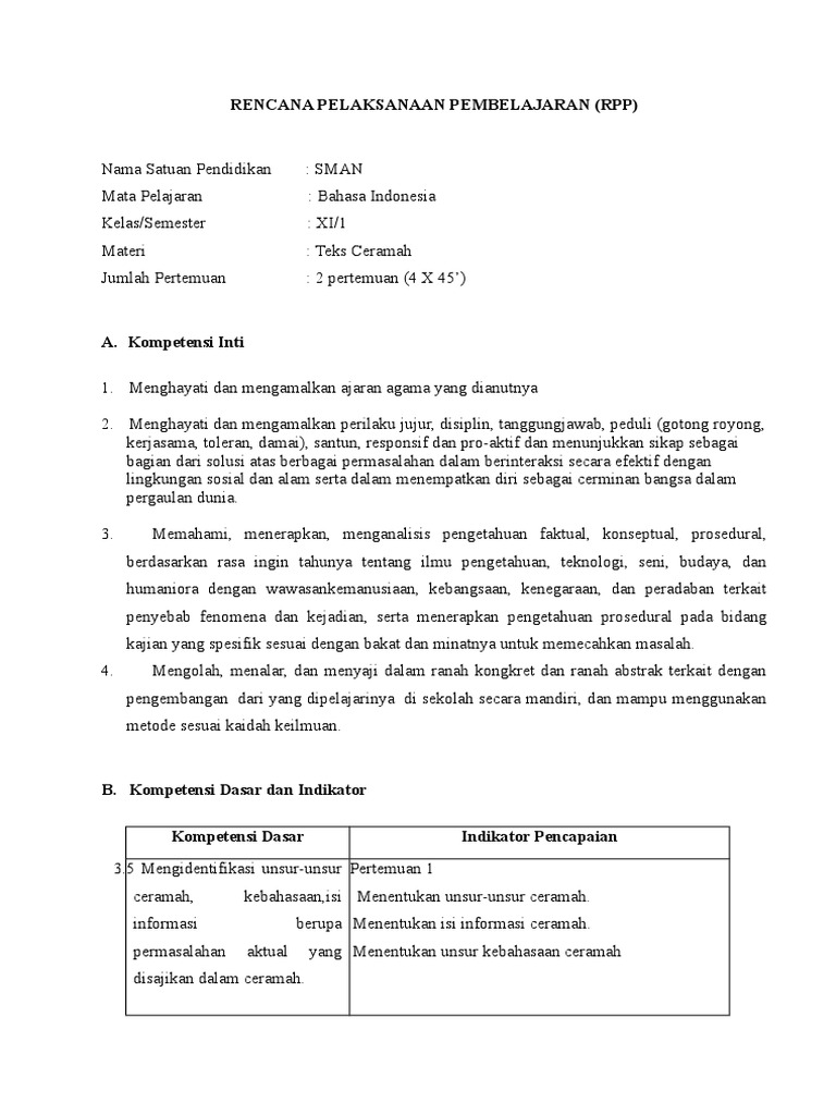 GURU BERBAGI | RPP BHS. INDONESIA TEKS CERAMAH