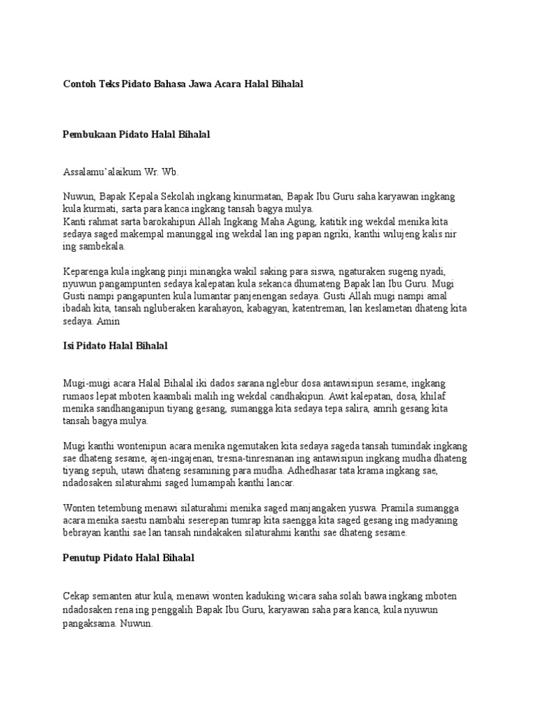 Contoh Teks Pidato Bahasa Jawa Acara Halal Bihalal | Kepala …
