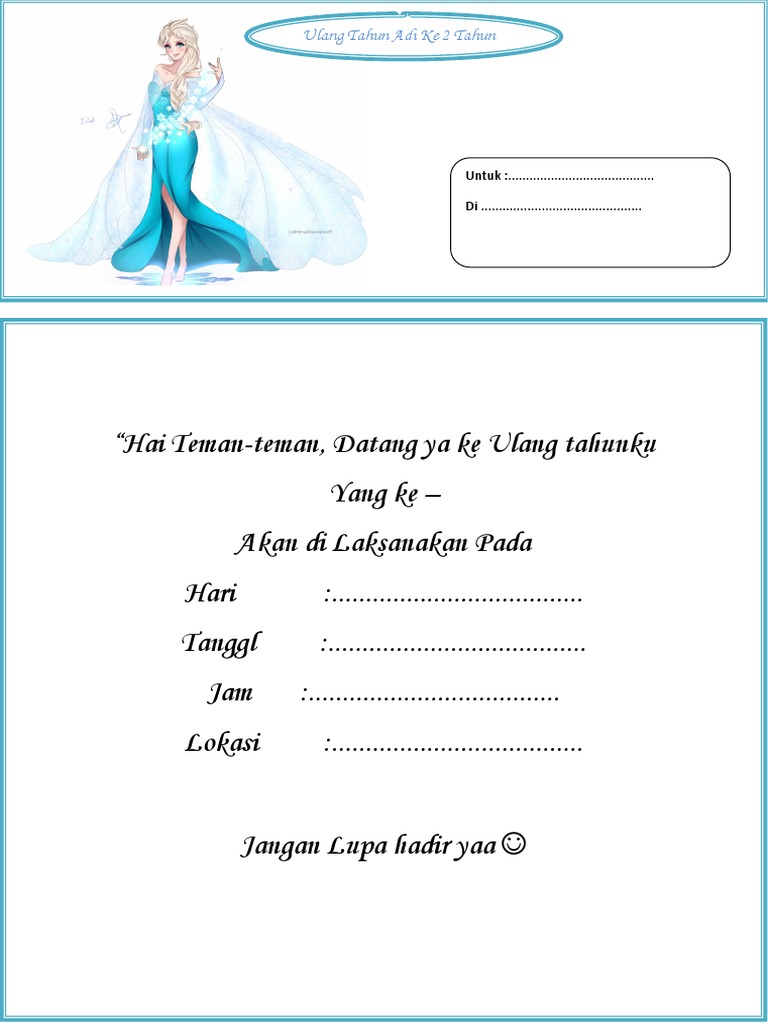 Undangan Ulang Tahun Anak Perempuan Frozen Information