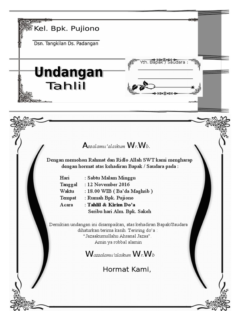 PDF) Contoh Surat Undangan Tahlil 40, 100, 1000 hari (haul).pdf | studio 81 - Academia.edu
