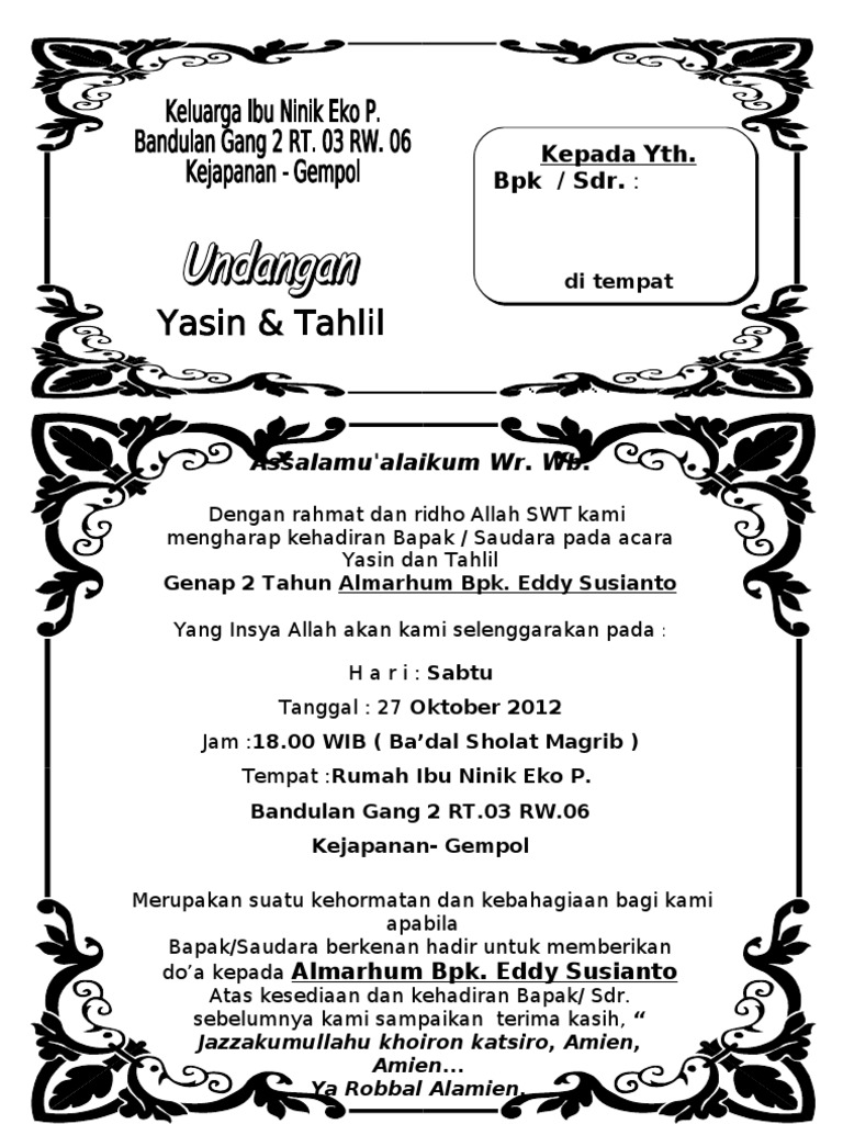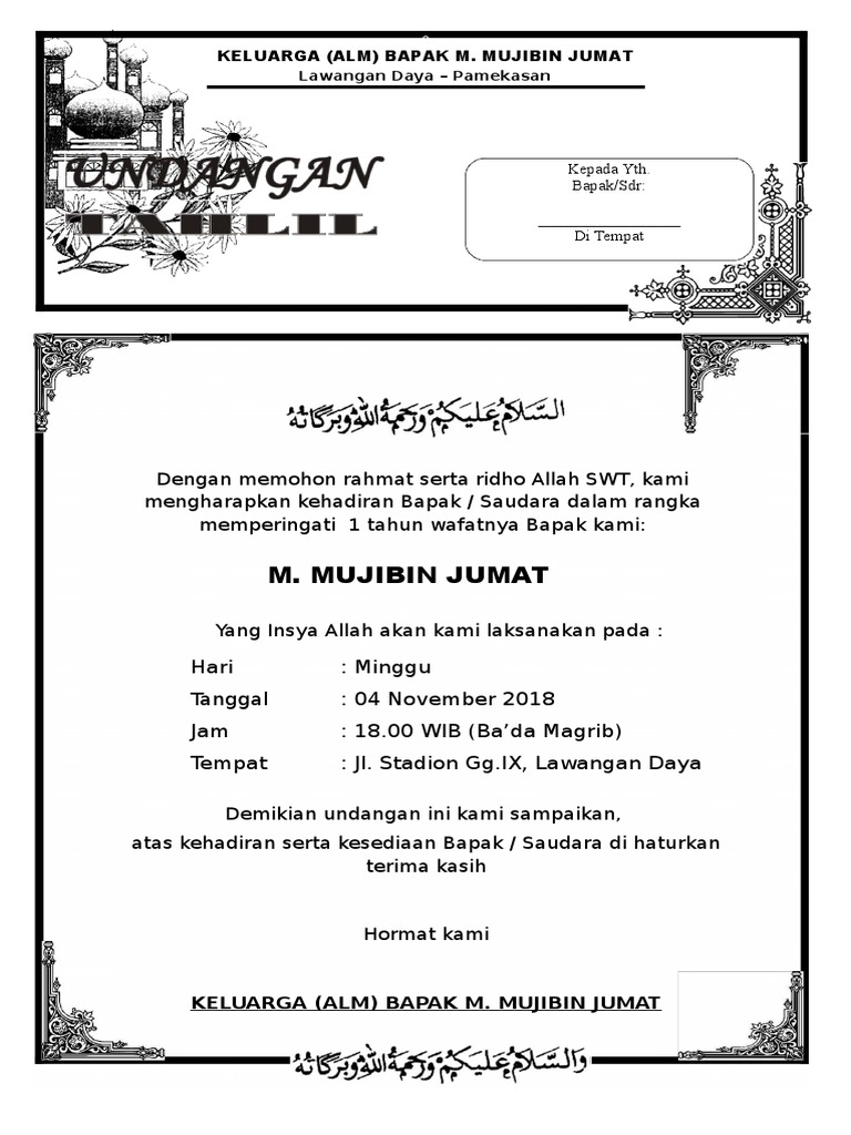 DOC) Contoh Surat Undangan Tahlil 40 100 1000 hari haul | agung wahyono - Academia.edu