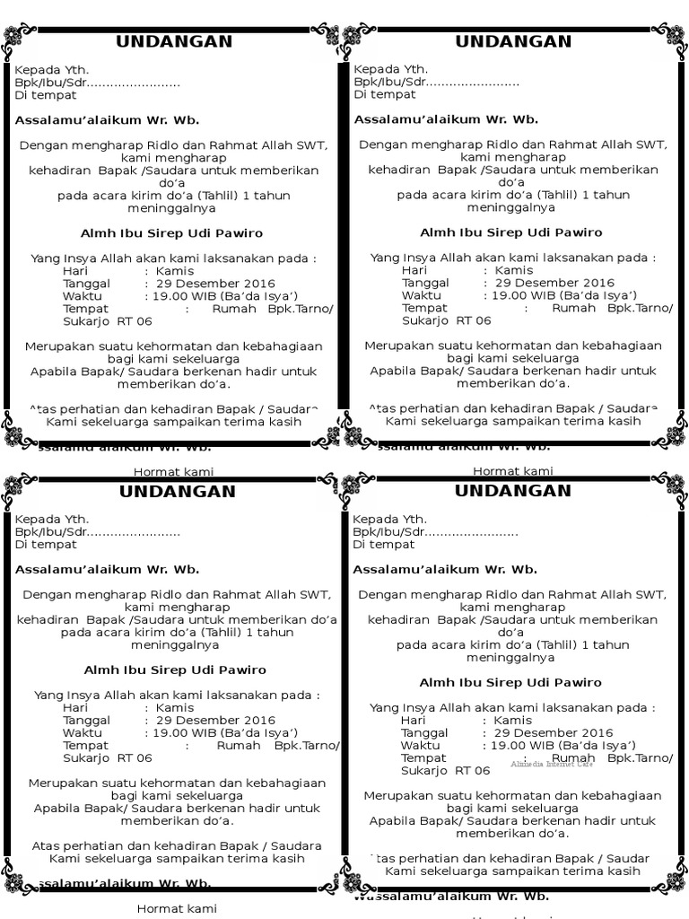 Download contoh undangan tahlil siap di edit word doc - TRIPROFIK.COM
