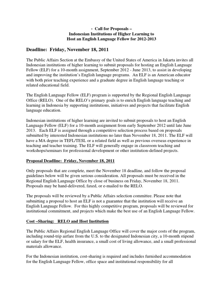 Indonesia Call for Proposals ELF Program 2012-2013 by 18Nov2011 | English As A Second Or Foreign Language | Indonesia