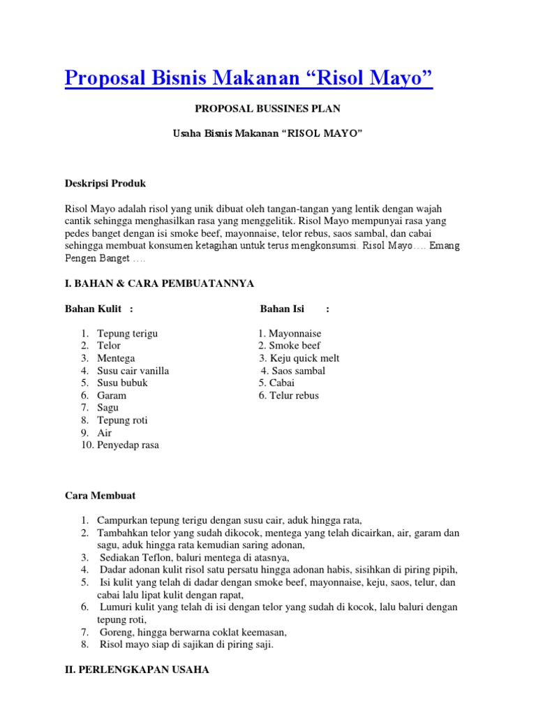 Contoh Proposal Bisnis Makanan - Guru Ilmu Sosial