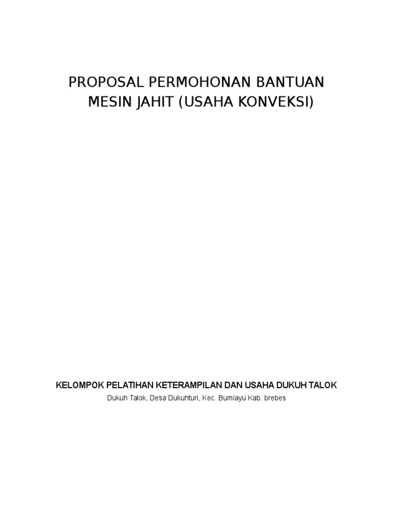Contoh Proposal Pengajuan Bantuan Mesin Jahit - Berbagi Contoh Proposal