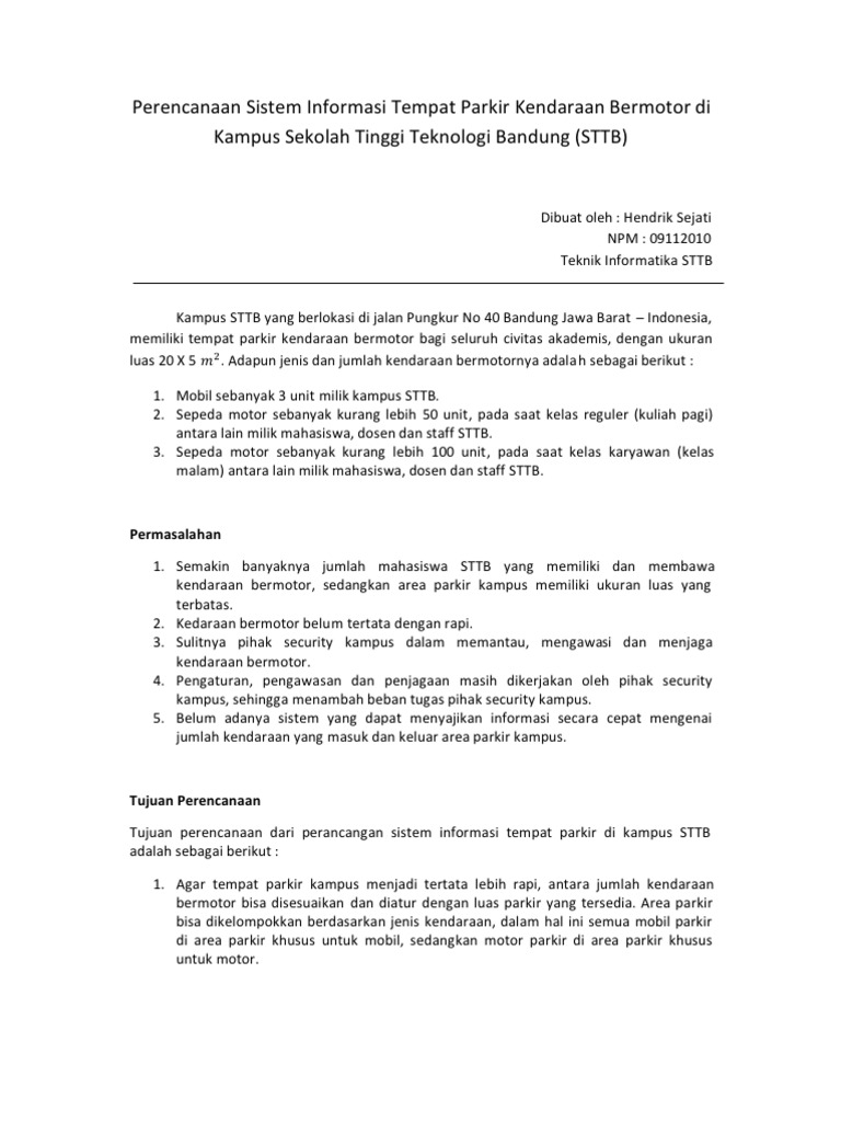 an Sistem Informasi Tempat Parkir Kendaraan Di Kampus Sekolah Tinggi Teknologi Bandung