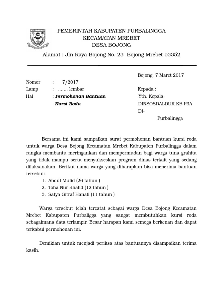 Surat Bantuan Kursi Roda