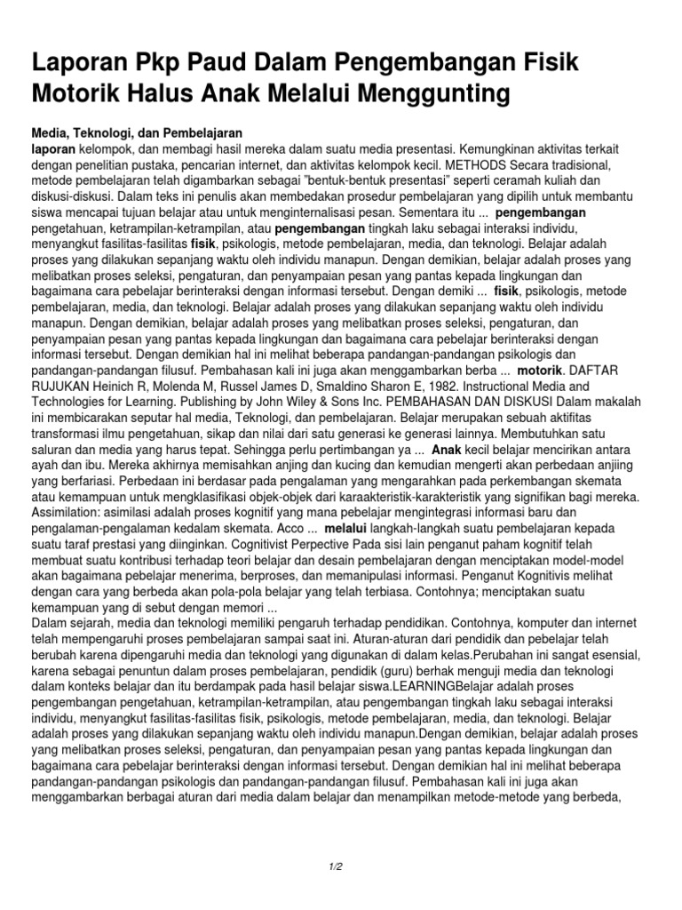 Laporan Pkp Paud Dalam Pengembangan Fisik Motorik Halus Anak …