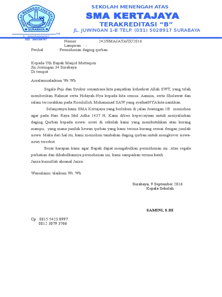 Contoh Surat Pemberitahuan Qurban | Zona ilmu 3