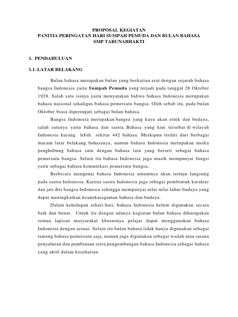 Proposal Kegiatan Panitia Peringatan Hari Sumpah Pemuda Dan Bulan Bahasa Smp Tarunabhakti