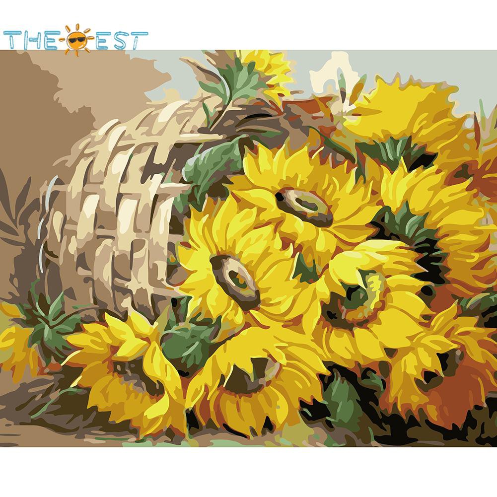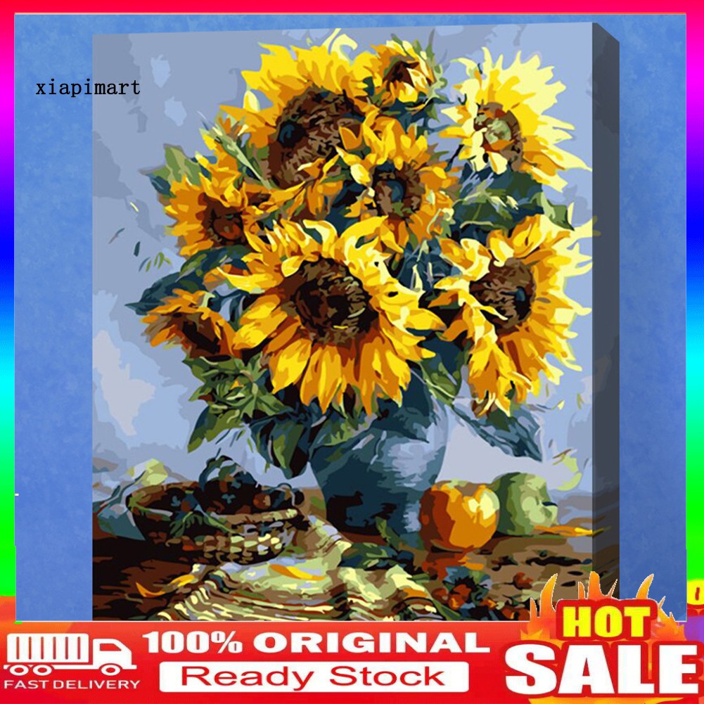 Thebest Lukisan Kanvas Cat Minyak Digital Diy Gambar Keranjang Bunga Matahari Dengan Angka | Shopee Indonesia