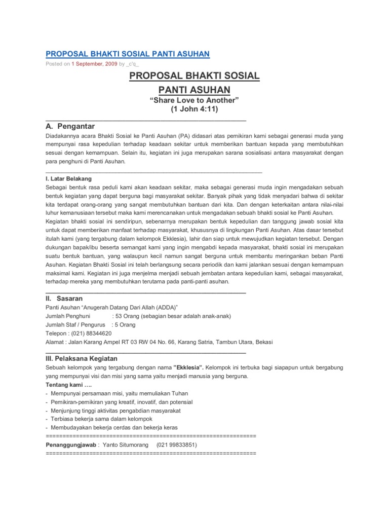 Contoh Proposal Kegiatan Bakti Sosial Ke Panti Asuhan - Temukan Contoh