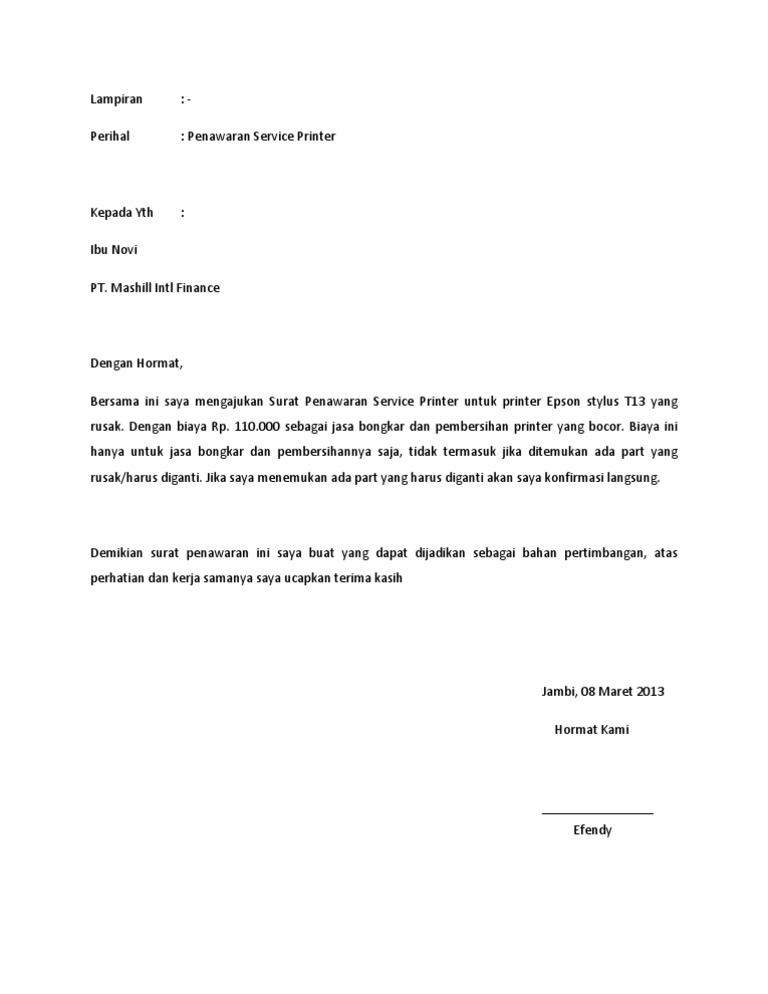 Contoh Surat Penawaran Jasa Service