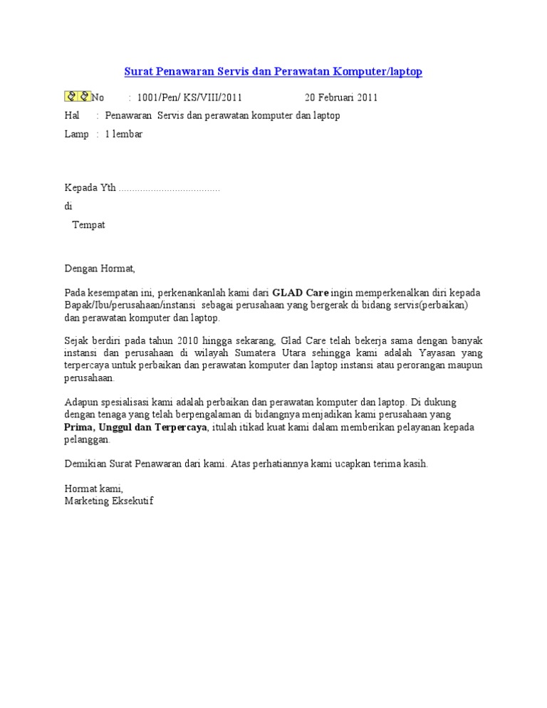 Surat Penawaran Kerjasama Jasa Service Komputer - Contoh Seputar Surat