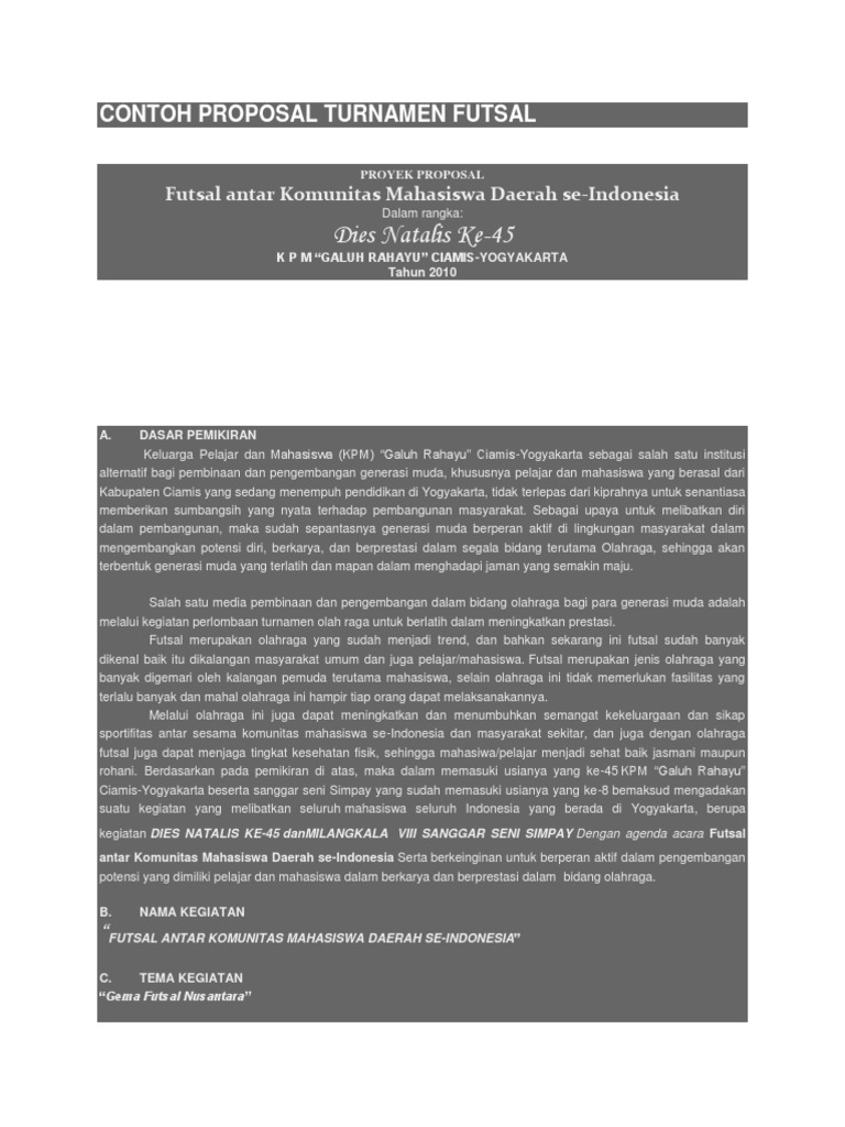 DOC) CONTOH PROPOSAL KEGIATAN TURNAMENT FUTSAL CUP | ilham kahfi2 - Academia.edu