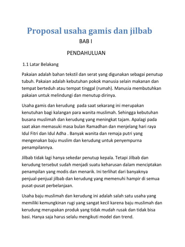 DOC) Contoh proposal perencanaan usaha hijabers | muba ahmad - Academia.edu