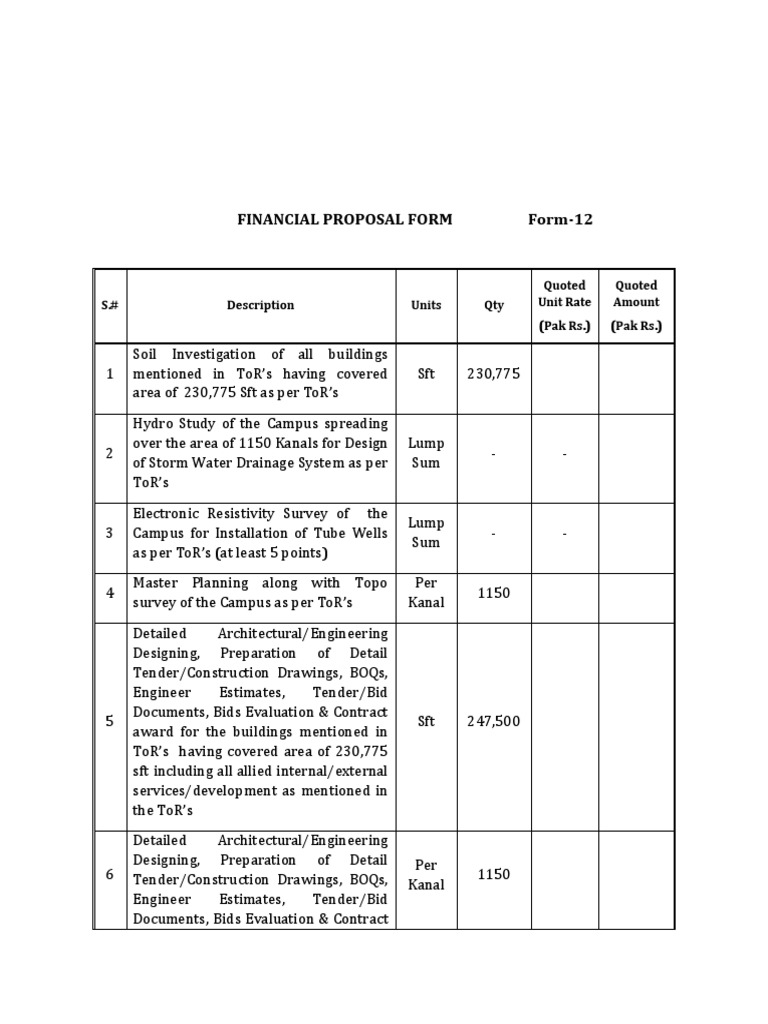 Technical and Financial Proposal-Consultancy Services for the Prepara
