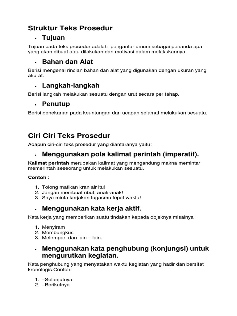Buatlah sebuah teks prosedur sederhana sesuai dengan struktur teks nya kemudian ciri isi dari teks - Brainly.co.id