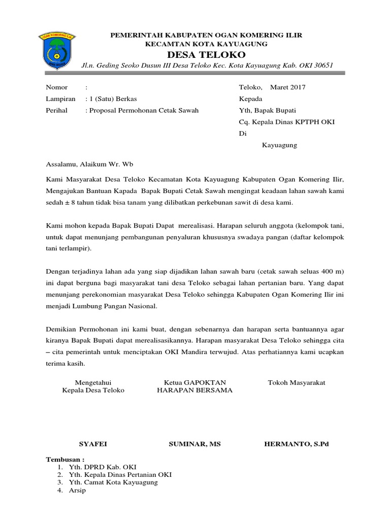 Contoh Proposal Pengajuan Pencetakan Sawah Baru