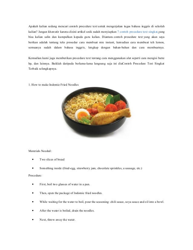 Contoh Teks Prosedur Membuat Makanan Dalam Bahasa Inggris - Dapatkan Contoh