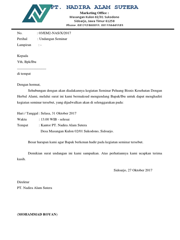 Contoh Surat Undangan Seminar Perusahaan - Sample Surat Undangan