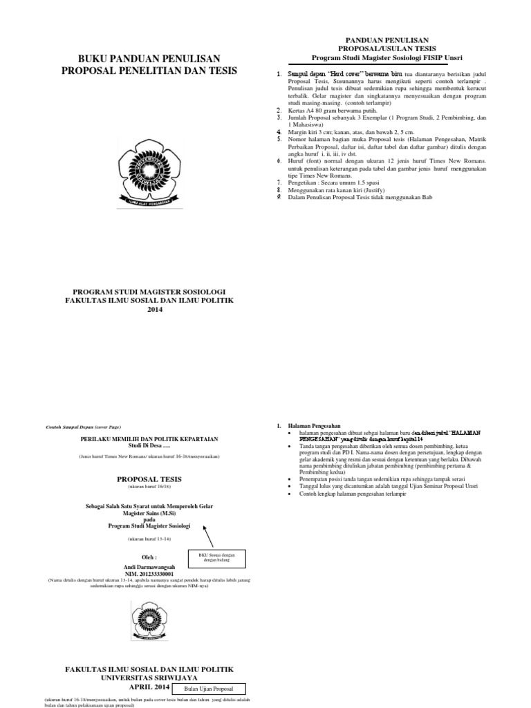 PANDUAN FORMAT PENULISAN PROPOSAL TESIS mtri. merupakan karya tulis ilmiah hasil penelitian yang mandiri untuk memenuhi … Contoh halaman sampul proposal tesis terdapat pada Lampiran