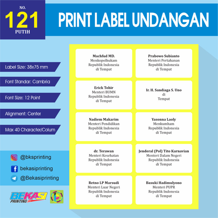Print / Cetak Label Undangan No.103 dan No.121 | Shopee Indonesia