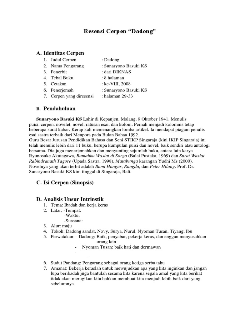 DOC) Contoh Resensi Cerpen | Dimitri Inzaghi - Academia.edu