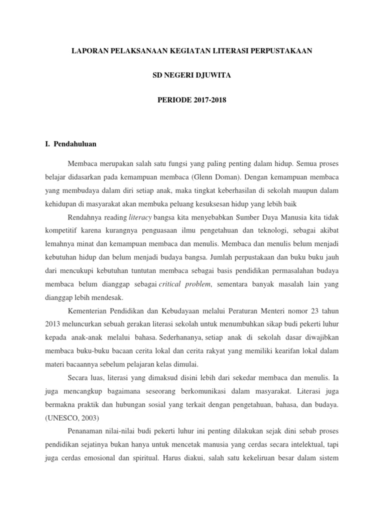 Contoh Rencana Dan Laporan Kegiatan Literasi Di Sd - Kumpulan Contoh Laporan