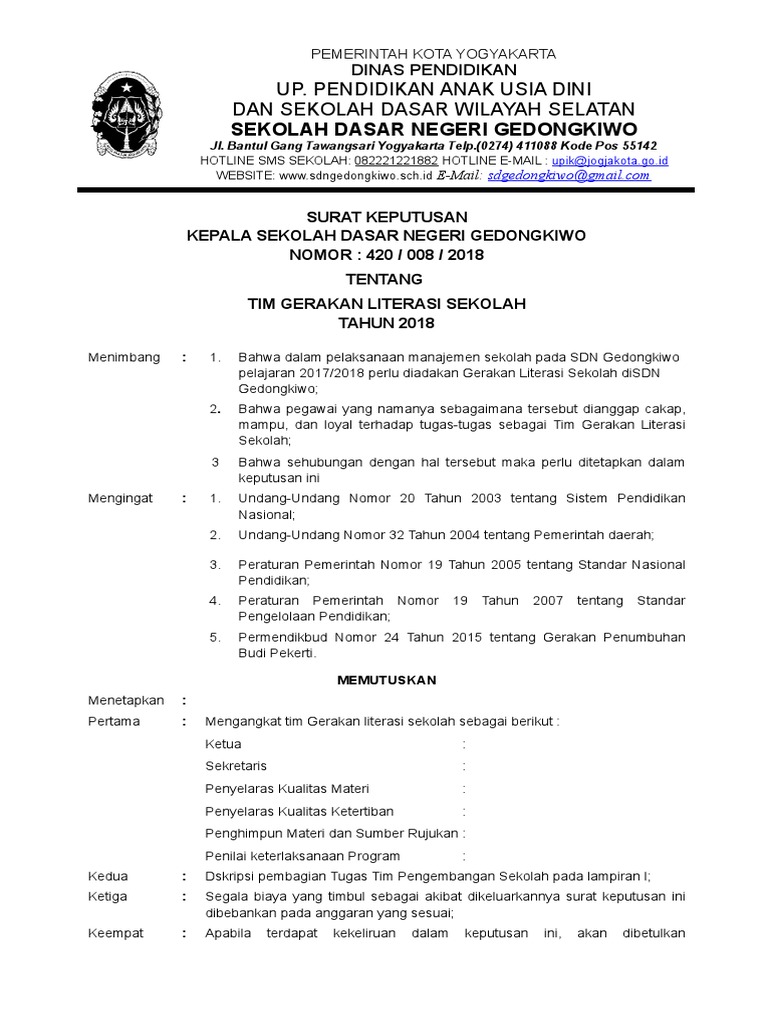 Contoh Sk Literasi Sekolah Dasar - Guru Ilmu Sosial
