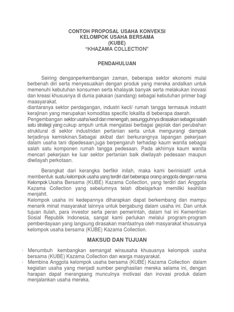 DOC) Proposal KUBE Usaha Konveksi | Uwais Iqbal - Academia.edu