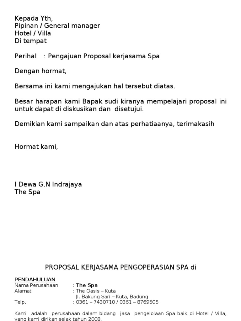 DOC) PROPOSAL Kerjasama BABY-SPA | Lutfi Smkbim - Academia.edu
