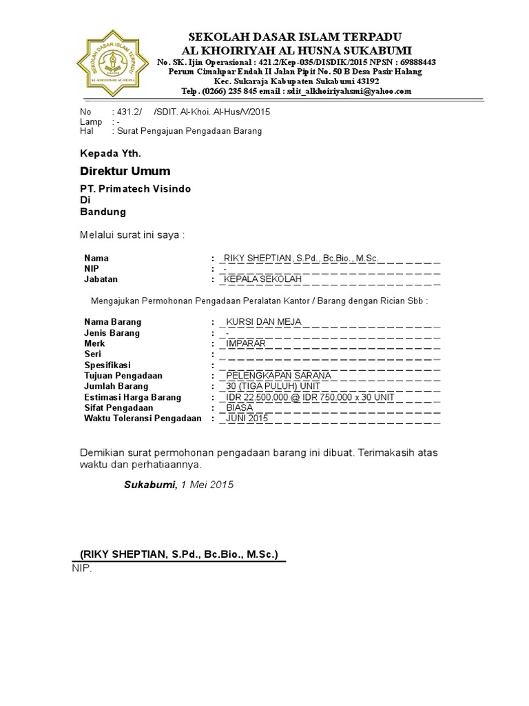 Contoh Proposal Pengajuan Barang | Blog Pendidikan